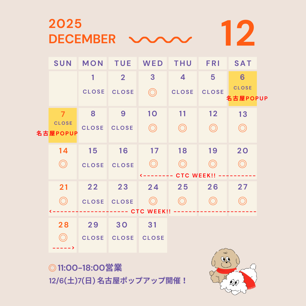 2025.11.17【12/6〜12/7】名古屋ポップアップ開催のお知らせ